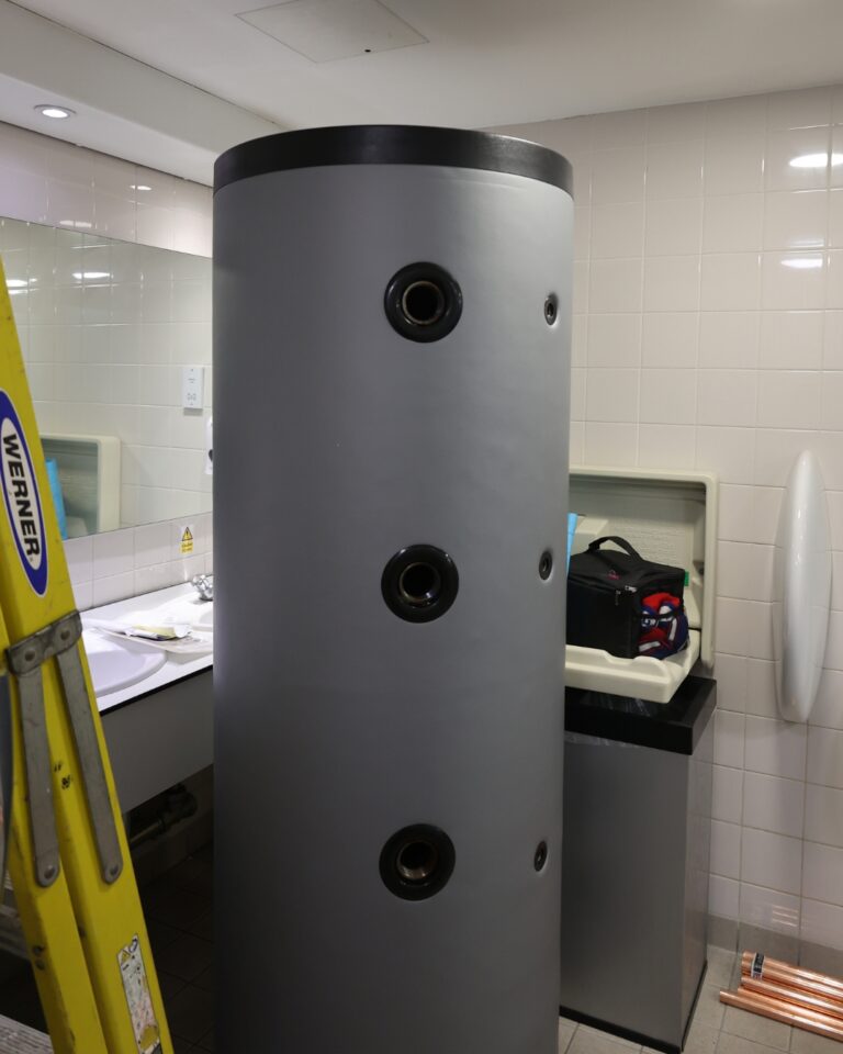 The existing heating infrastructure comprised of a gas boiler serving both space heating and domestic hot water. With the boiler failing, it was a perfect time to decarbonise and future-proof the venue.